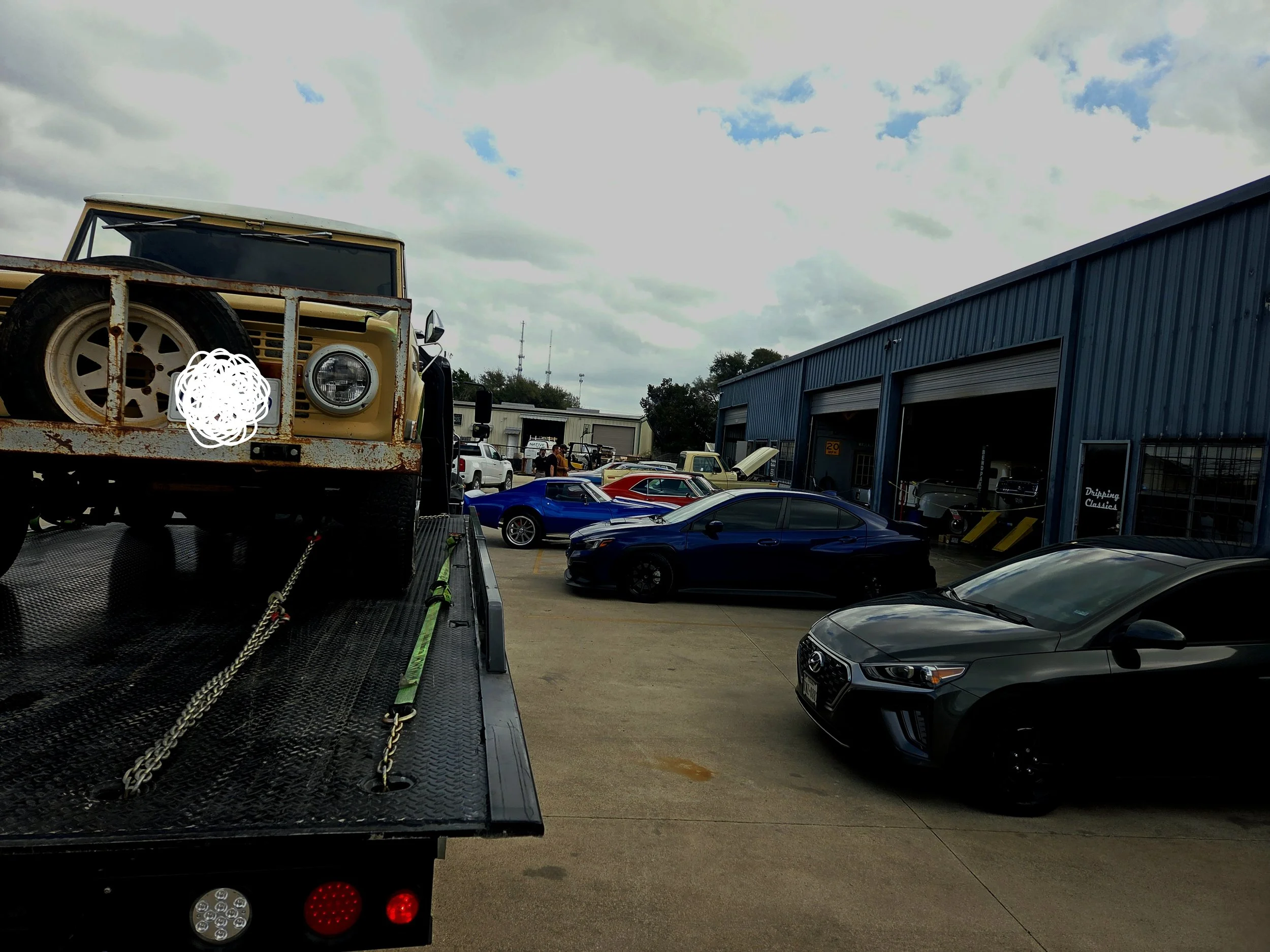 Vehicles headed to or from restoration shops